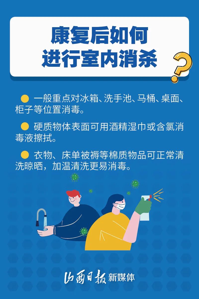 近期,不少新冠病毒阳性感染者经过居家治疗后逐步康复。那居家康复后多久可以恢复正常生活呢?康复后应该如何进行室内消杀?这份指南请收好。