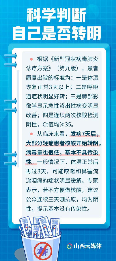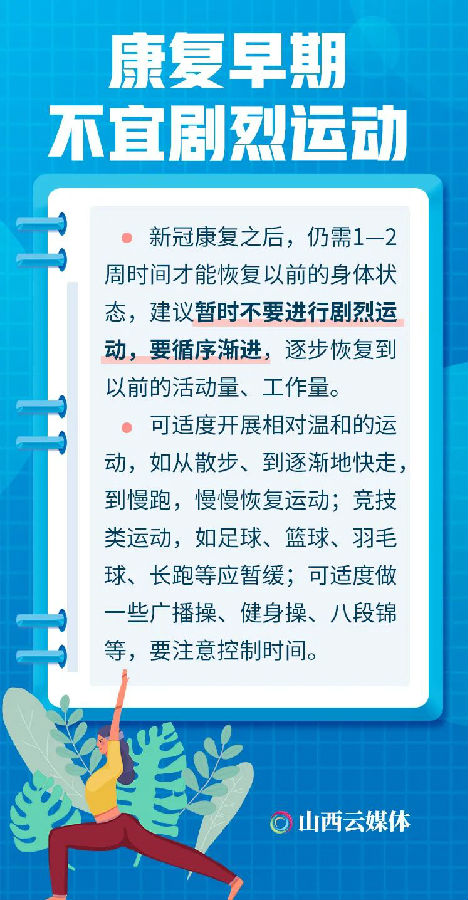 当前,已经有部分市民在感染新冠之后慢慢恢复过来,不少人已经计划开启“出门嗨”模式。那么,如何判断自己是否转阴?康复早期可以剧烈运动吗?还应该注意哪些事项……山西省疾病预防控制中心给出了明确提示。