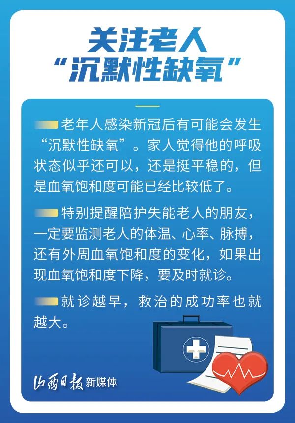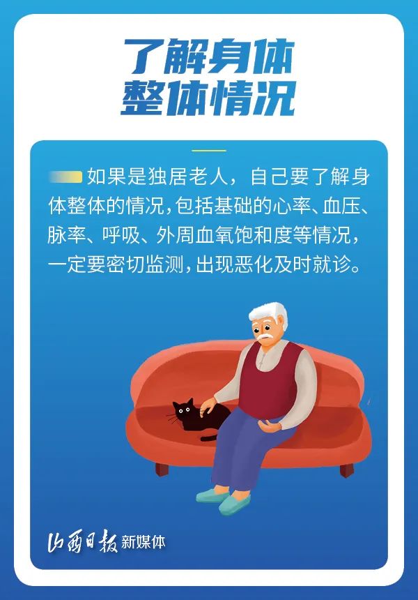 老年人在家里一旦出现了发热或者新冠的感染,一定要加强监测,特别是加强家人的关注。因为老年人相对年轻人对机体异常的反应可能不是那么明显,比如有些老年人已经体温升高了,但他并不知道自己已经发烧了,所以,日常生活中,一定要更加关注以下方面!