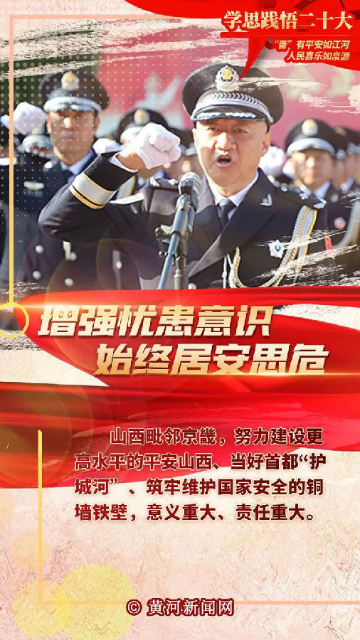 国家安全是民族复兴的根基,社会稳定是国家强盛的前提。全面建设社会主义现代化国家,必然会面临各种风险挑战,山西坚定不移贯彻总体国家安全观,在维护安全稳定上体现更大担当。