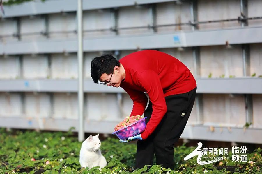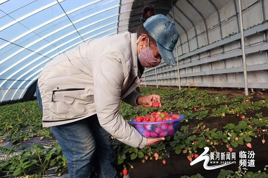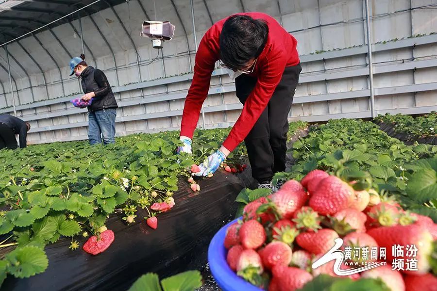 日前,山西省临汾市尧都区北练李村果中果采摘园公司,果农采摘草莓准备销售。