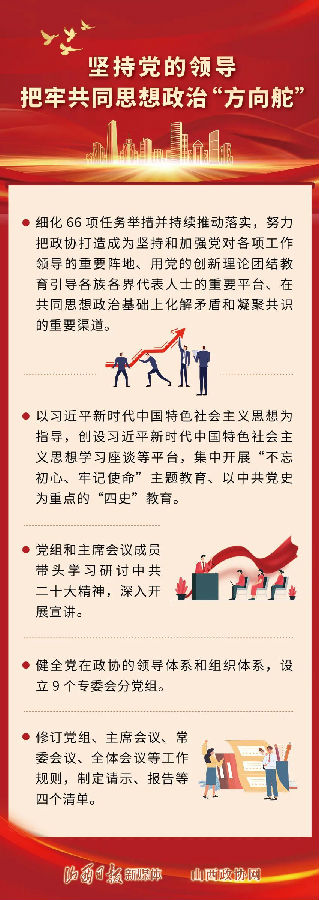 在中共山西省委坚强领导下,十二届省政协及其常委会坚持以习近平新时代中国特色社会主义思想为指导,全面贯彻中共十九大、二十大精神和习近平总书记考察调研山西重要讲话重要指示精神,把学习贯彻习近平总书记关于加强和改进人民政协工作的重要思想作为重中之重,全面落实中共中央决策部署和省委各项要求,先后组织81次主席会议、27次常委会议、5次全体会议;组织开展重要协商活动110次、报送建议报告100件,省委、省政府领导同志批示73件;向全国政协提交联名提案40余件、编报《他山之石》40期、省委主要领导批示29期;征集提案5677件、收集社情民意信息6万余篇……
