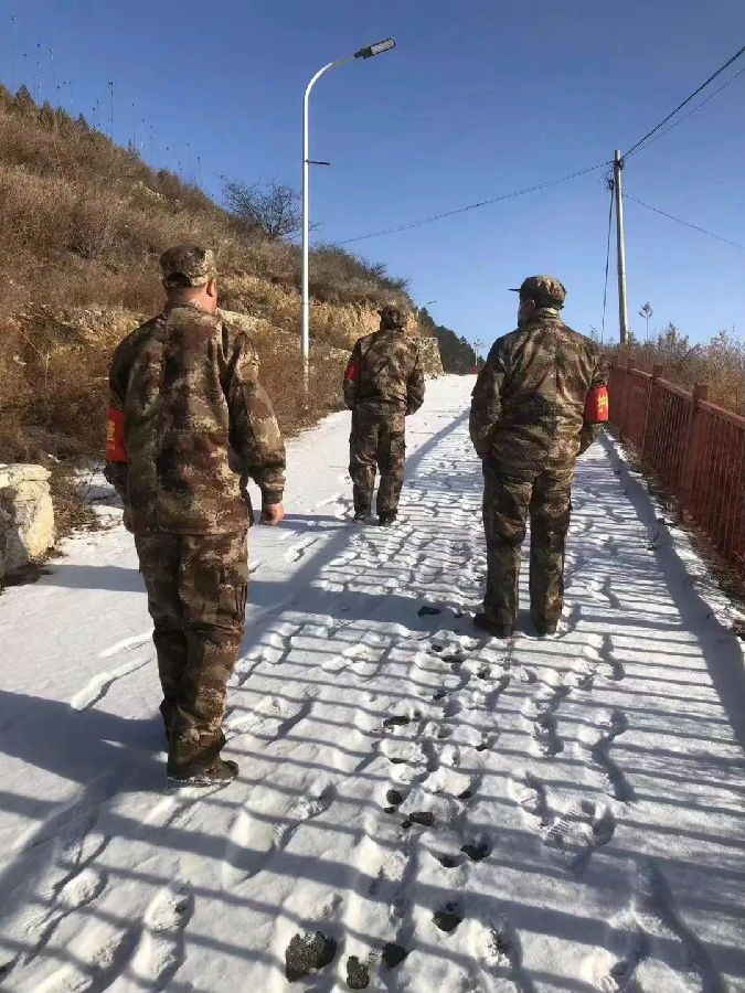 1月21日,除夕清晨,张田杰早早起床。简单的吃过早饭后,他就穿上厚厚的迷彩服,和护林员在分管林区巡山防火。山里的气温低于零下10℃,寒风阵阵。每一次呼吸,都能呼出一团团白气。