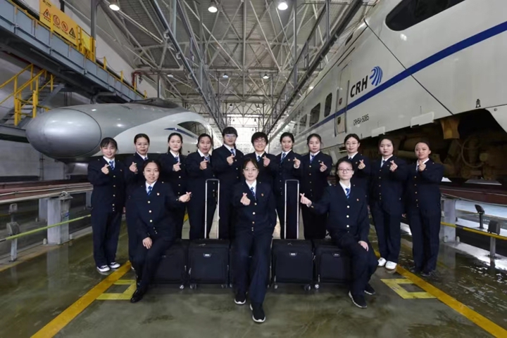2018年3月8日,由14名女大学生组成了全国首支高铁动车组女子乘务队,主要承担进京动车组的随车值乘任务。今年,是她们第5次迎接春运“大考”,这14名队员已累计完成了2万余趟值乘任务,安全运行4000余万公里。
