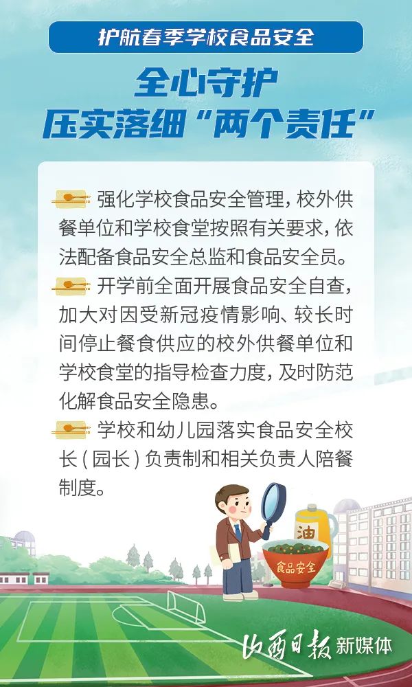 近日,国家市场监督管理总局联合教育部、国家卫生健康委、公安部印发《关于做好2023年春季学校食品安全工作的通知》,全力保障广大师生“舌尖上的安全”。