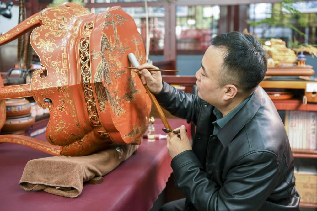 与汾阳市相邻的山西晋中平遥县则将唐都推光漆艺文化产业创意园建在了平遥古城内,生产销售、展览收藏、旅游观光、研发培训、创业孵化、传承创新、研学实践……参观的人们惊叹于传统技艺的高超与精湛。
