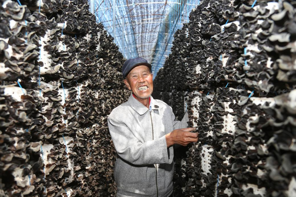 吕梁中阳县农民在采摘木耳。张旭盛摄