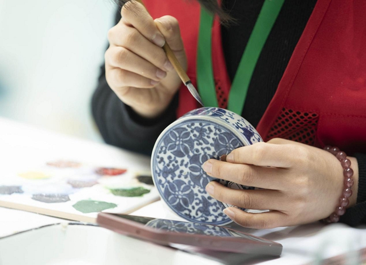 文物修复师修复陶瓷文物。人民网记者 王帆摄