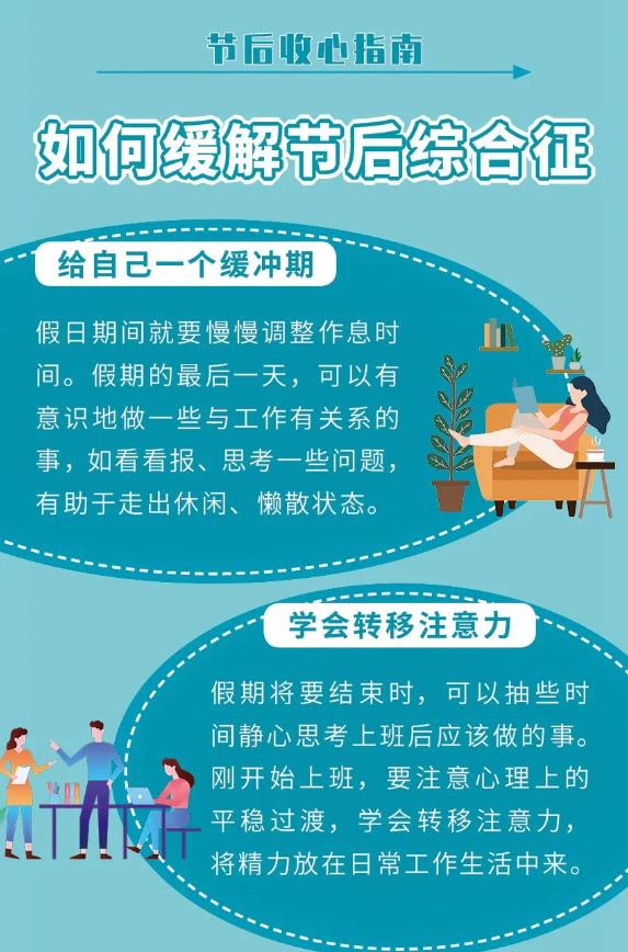“五一”假期结束,一切又回归正常状态时,你却感觉身体无法回归了?是不是也感到有点提不起精神、焦虑、困倦,甚至出现明显的睡眠障碍或抑郁情绪?其实,这就是所谓的“节后综合征”!对付它,有妙招!