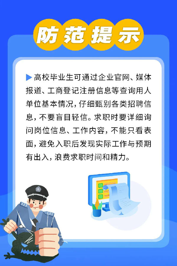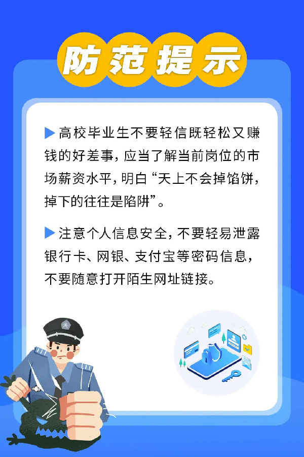 当前,正值求职高峰期,高校毕业生陆续开始投递简历,为进入职场摩拳擦掌。但总有不法分子专挑涉世未深的毕业生求职者进行欺诈。求职不易,毕业生一定要擦亮眼睛,警惕陷阱。