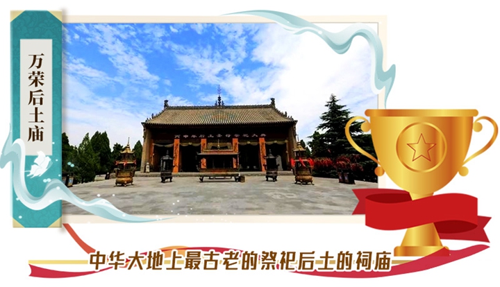 万荣后土庙始建于汉,唐、宋各代屡事兴建,后遭黄河水患被淹没。清同治九年(1874)易地重建于今址。后土庙现存建筑以晚清所建居多。庙址坐北朝南,总平面呈南北长的矩形,沿中轴线有山门、戏台、献殿、享亭、圣母殿、秋风楼,献殿两侧为东西五虎殿,圣母殿东侧为碑亭。秋风楼辉宏典雅,挺拔秀美,为中国楼阁建筑中的佳作。