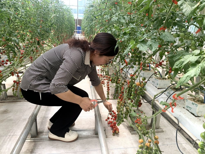工作人员正在采摘小西红柿。新华社记者 魏飚 摄