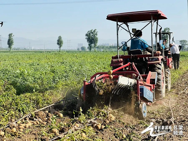 夏粮主要包括夏收的谷物、豆类和薯类等,约占全年粮食总产量的四分之一。7月9日,走进吕梁市文水县农源薯土豆种植基地,机器人力合作收土豆。梁燕则 摄