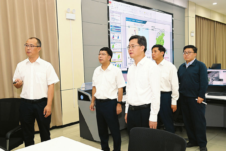 7月29日下午,省委书记蓝佛安在省气象台详细了解近期全省天气变化趋势,听取气象会商、预报预警工作等情况汇报。本报记者史晓波摄