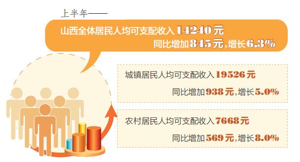 上半年,我省坚持稳字当头、稳中求进,完整、准确、全面贯彻新发展理念,全力保障稳增长各项政策落地见效,多渠道增加居民收入,山西城乡居民收入继续稳定增长。数据显示,山西全体居民人均可支配收入14240元,同比增加845元,增长6.3%。