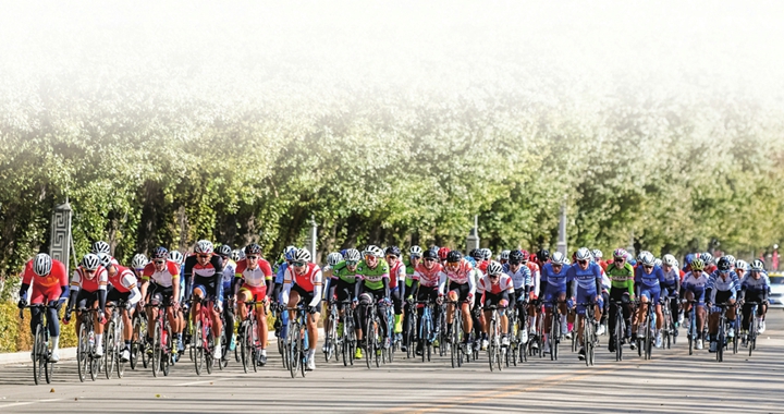 2019环太原国际公路自行车赛期间,选手们在奋力骑行。王宏德摄