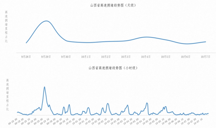 假期尾日(10月6日)下午16时后,路网返程高峰,车流相对较为集中,去往省城太原方向的高速路段流量大幅增加,易发拥堵缓行情况,返程高峰会持续到21时左右逐步回落。