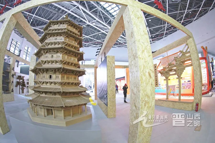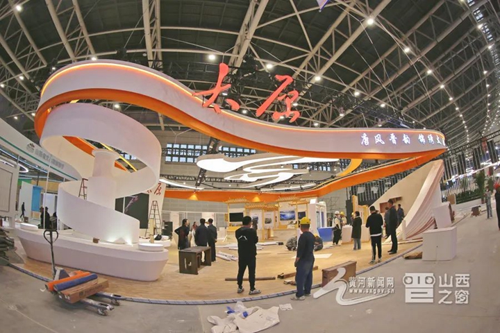图为朔州展区。朔州展区已完成大部分搭建工作,后续处理工作仍在紧张进行中。朔州展区内主要设置有右玉旅游生态文化区、应县木塔文化区以及朔州文创产品和融媒体等内容,展馆布展突出朔州地域文化特色,全面展示朔州近年来文化改革发展的重大成就,重点反映出了朔州文化产业的发展成果和前景。钱龙 摄