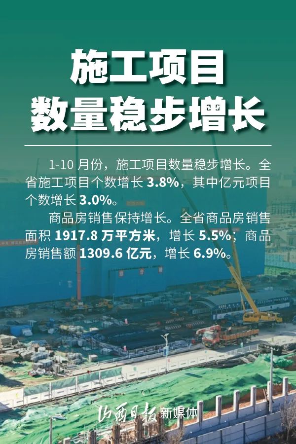 11月20日,山西省统计局公布1-10月山西经济成绩单,总的来看,主要指标稳定增长,工业生产平稳运行,消费市场稳步复苏,就业物价总体稳定,经济运行持续回升向好。同时也要看到,当前需求不足等问题仍然存在,经济持续回升的基础还不牢固。一组海报,了解山西经济运行情况。