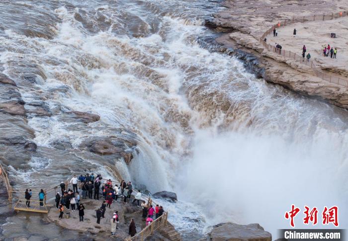 初冬时节,壶口瀑布水色褪黄转清,从“浊浪翻滚”变为“白浪滔天”。滔滔黄河水湍流喷泻,直落龙槽,激起层层浪花,白雾跃然升腾。其声、其势、其景,壮、秀、奇,使人陶醉其间。