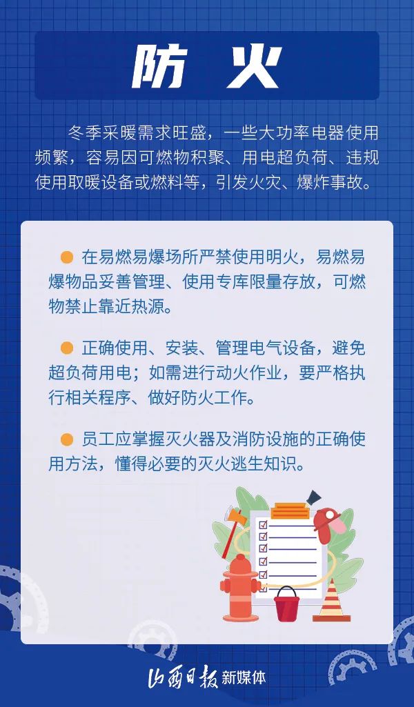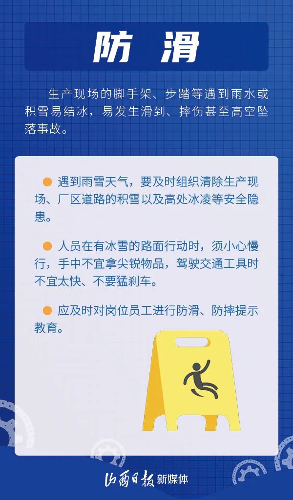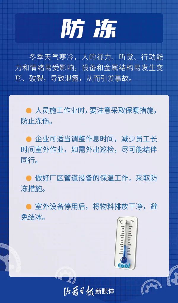 冬季寒冷干燥,并伴有低温、强风、冰冻、雨雪、大雾等恶劣天气,容易发生冻伤、滑跌等人身伤害事故,对安全生产造成影响。冬季应该怎样消除隐患,安全生产?一起来学习吧!