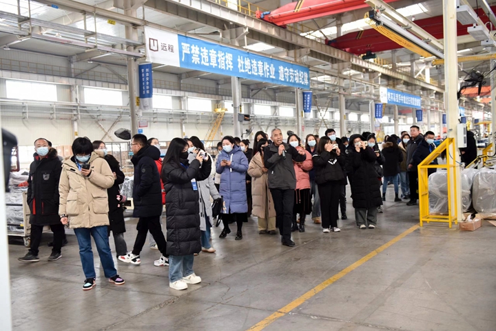 ▲采访团走进山西吉利新能源商用车有限公司甲醇重卡项目总装车间