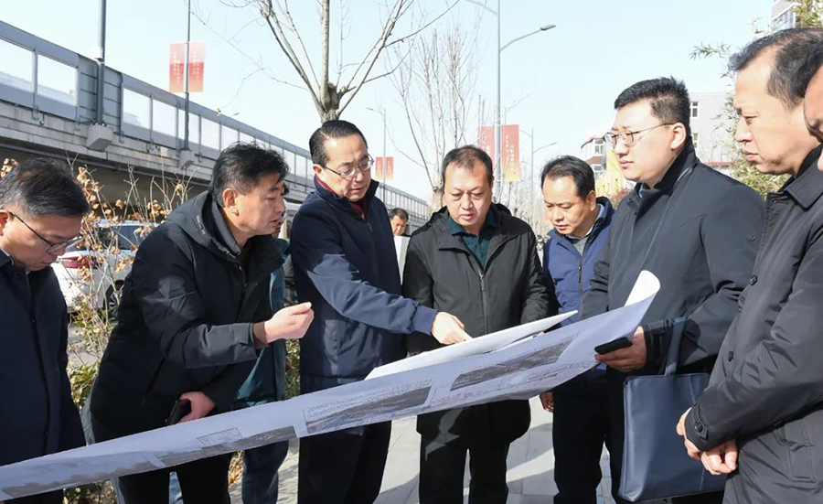 2023年12月6日,临汾市委书记李云峰在市区快速中环、文化主轴等重点建设项目工地调研。(闫锐鹏 摄)