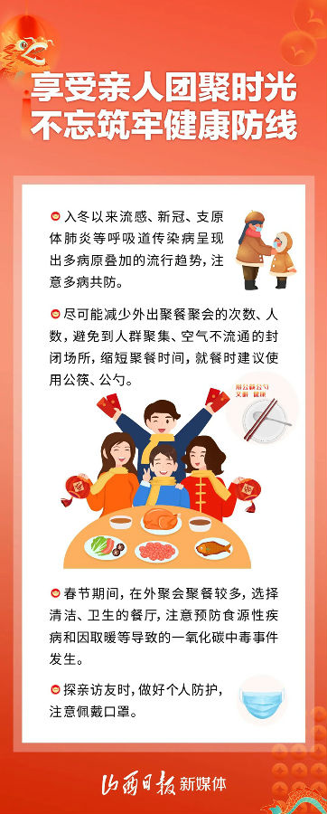 当前正值呼吸道、肠道传染病多发季节,伴随春节假期的来临,人员流动和聚集性活动明显增多,做好个人防护很重要。为此送上健康小贴士,开开心心迎新年。