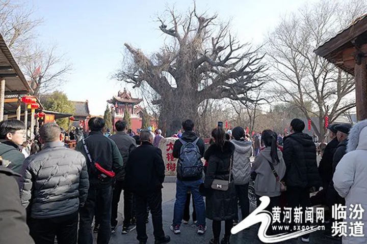 2024年2月11日,农历甲辰年正月初二,一大早来自全国各地的移民后裔便纷至沓来,位于山西省临汾市的洪洞大槐树景区内外人潮涌动,游客们三五成群,有说有笑,景区浓厚的节日氛围与游客们的欢声笑语相映衬,一派喜气洋洋的热闹景象。