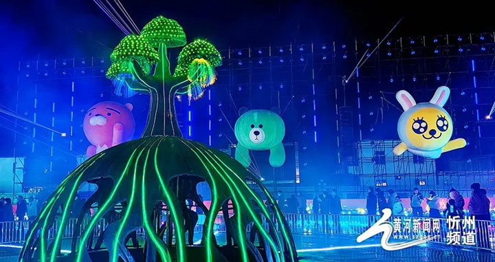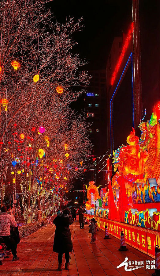 近日,记者在忻州城区看到各大广场、公园、街道、市直单位等地方,布置了多组大型花灯和众多的彩灯装饰,就连路边的树木草坪也都装饰了五颜六色的彩灯,与各色造型灯组相得益彰,置身其中仿佛进入了一个光与影的美妙世界。