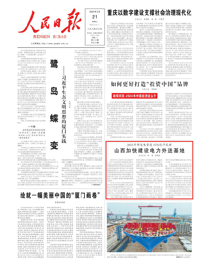 5年来,山西电力外送基地建设成果丰硕:全省外送电量增长七成,外送电量占总发电量比重增加5个百分点。2023年,山西全年外送电量再创新高,达1576亿千瓦时,同比增长7.67%。截至2023年底,山西发电总装机13304万千瓦,全年发电量4461亿千瓦时。