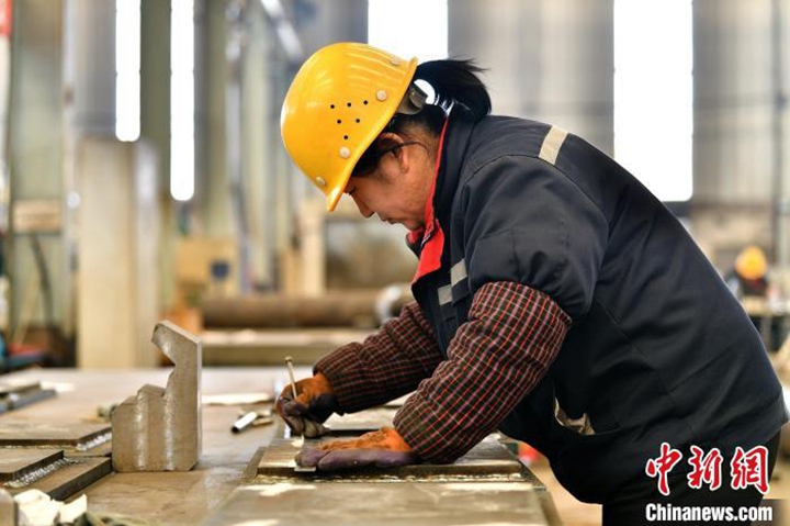 工人在车间划线作业。 中新网记者 韦亮 摄