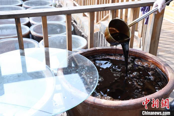 从事制醋已有10年的八月清醋坊负责人孙文婷,为找寻古法手工陈醋经典口味,她拜师学习传统酿醋工艺,酿造出的陈醋,口感酸、香、绵,品到最后还有回甘。