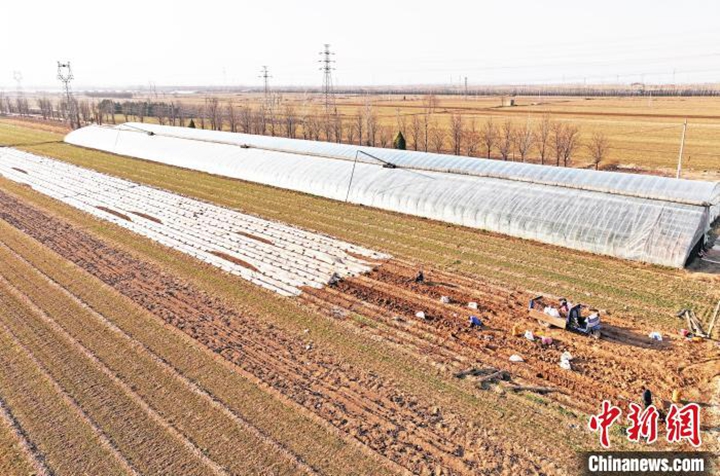 村民在山药地备耕春播。(无人机照片)高新生 摄