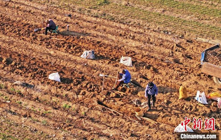 村民正加紧收获山药备耕春播(无人机照片)。高新生 摄