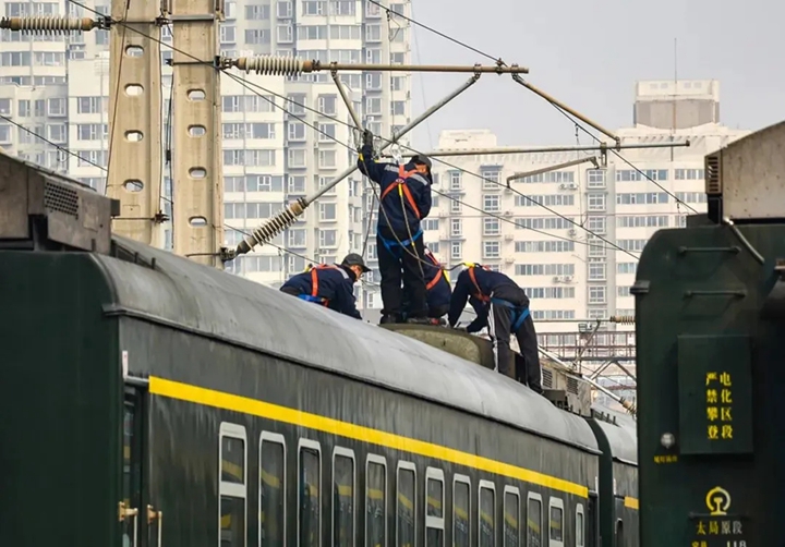 太原车辆段检修车间,工人针对动客车春季整修项点多、范围广、难度大的特点,忙着对机车进行解体、检修、清洗等工作,保障列车安全运行,为乘客提供安全舒适的乘车环境。