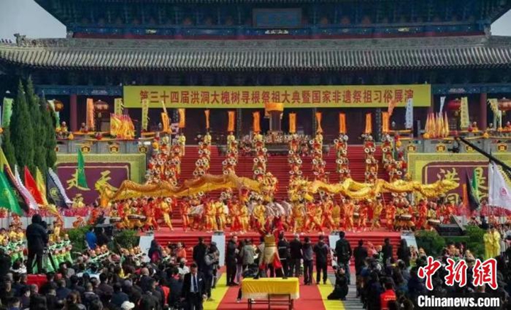 “华人老家”山西洪洞举办寻根祭祖大典。洪洞大槐树景区供图