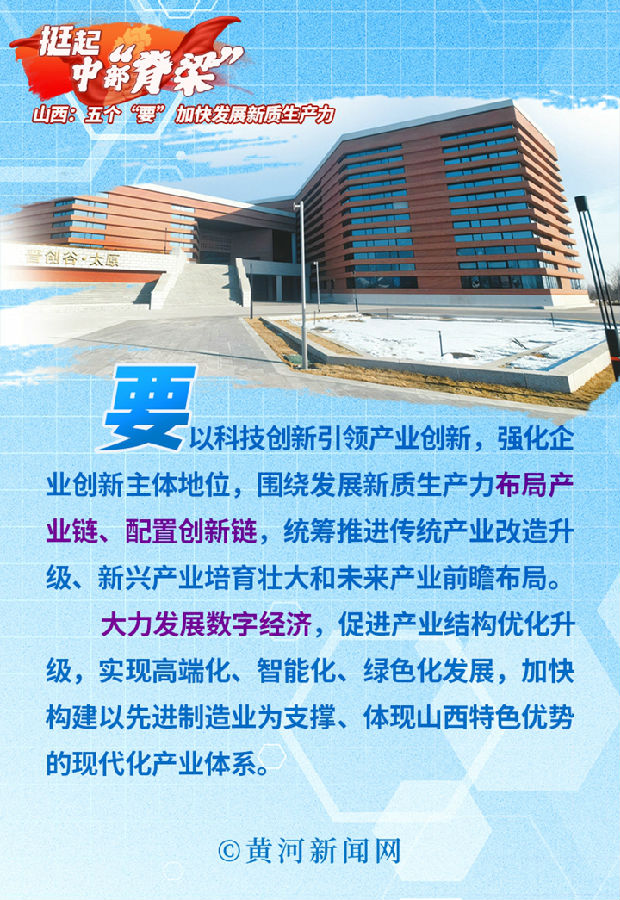 编者按:中部地区承东启西、沟通南北,在我国区域发展格局中具有举足轻重的战略地位。3月20日,习近平总书记在新时代推动中部地区崛起座谈会上强调,在更高起点上扎实推动中部地区崛起。山西如何抢抓机遇,加快培育新质生产力?如何乘势而上,开创高质量发展新局面?黄河新闻网特别开设“挺起中部‘脊梁’”专栏,以全方位、立体式报道,生动展现在新时代推动中部地区崛起的宏伟征程中,奋勇争先的山西答卷。