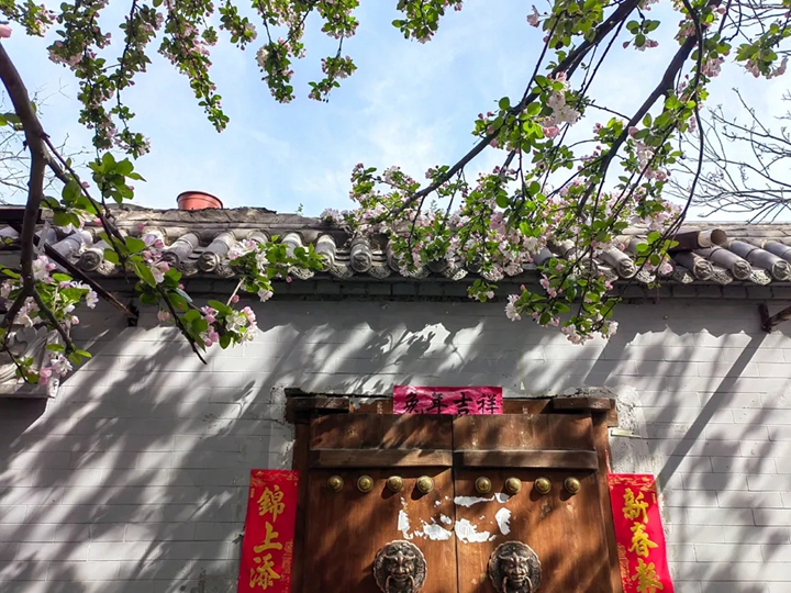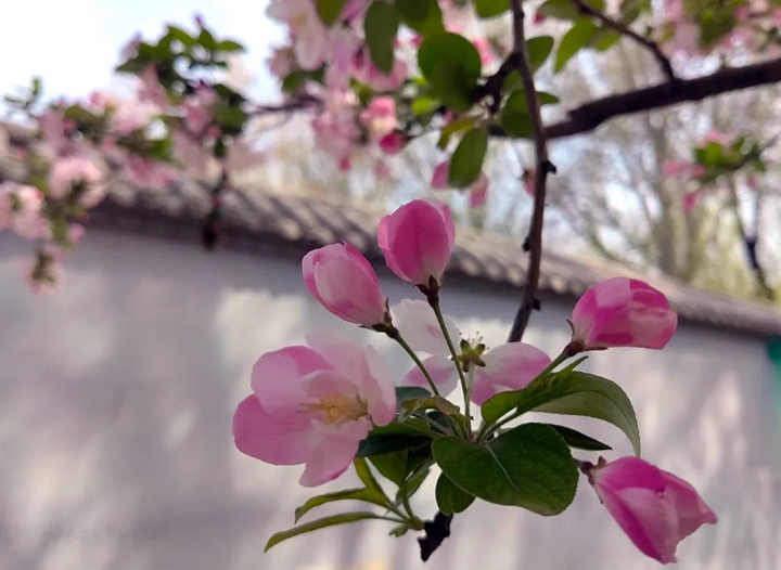 清明时节,一场绵绵春雨过后,太原杏林七条盛放的海棠让人们邂逅了一场美不胜收的花海。粉白相间的海棠、富有年代感的木门与灰色的砖墙,优雅中带着古典,古典中又透着浪漫的气息,清明小长假,许多市民身着艳丽的服装,前来这条位于桃园三巷附近的“网红”小巷打卡留念。