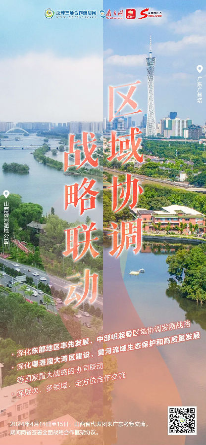 4月14日至15日,山西省代表团来广东考察交流。15日上午,两省在广州召开座谈会,就加强粤晋全方位合作、携手推动高质量发展进行深入交流,并签署全面战略合作框架协议。