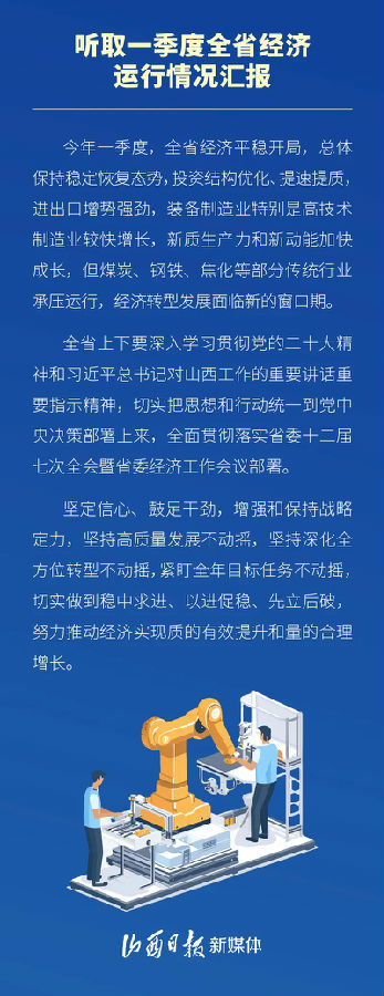 4月19日,省委召开常委会会议,学习贯彻习近平总书记在《求是》杂志发表的《加强文化遗产保护传承 弘扬中华优秀传统文化》重要文章,听取一季度全省经济运行情况汇报,研究部署当前经济工作,听取2024年山西省劳动模范、先进工作者和模范集体推荐评选情况汇报。省委书记唐登杰主持会议。