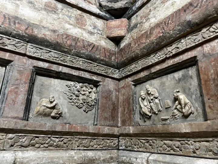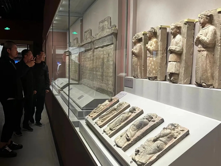 赵志明介绍,“此次展览非常值得大家来参观的是山西博物院藏珍贵文物《郝匠金墓》,该墓于2013年发现于晋城市郝匠社区,为砖砌仿木结构双室墓,前、后墓室均采用砖雕加彩绘的装饰手法,砖雕刻画细腻,彩绘疏密有致,显得富丽堂皇。其中孝子故事、妇人启门等砖雕,生动传神,艺术价值颇高。”