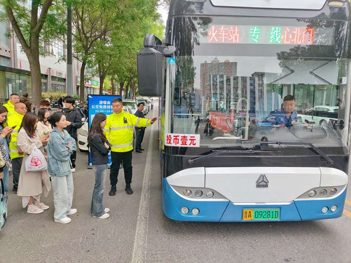 在五一东街火车站接驳点,指引水牌、标识被摆放在醒目位置,负责秩序维护的工作人员和志愿者坚守岗位、及时为乘客提供乘车引导、秩序维持、线路咨询等服务。同时,密切关注客流变化,及时调整发车班次。