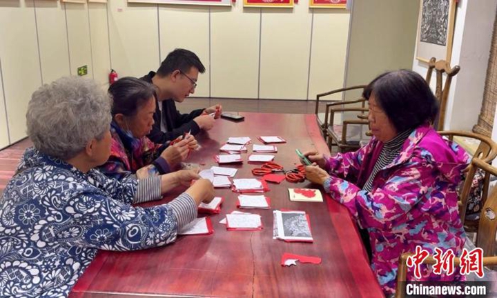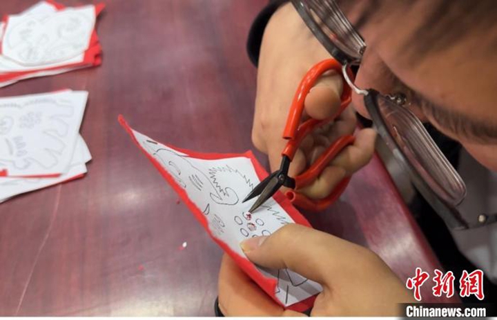 游客现场体验剪纸,感受中华传统文化的魅力。杨静摄