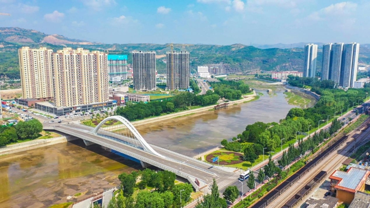 横跨汾河的火山二桥成为古交市的新地标。新华网 发