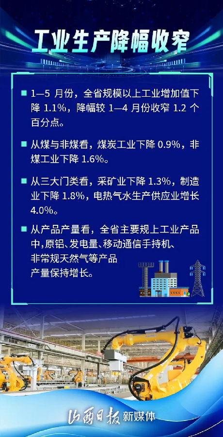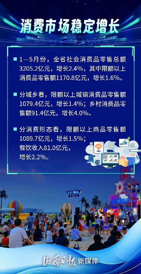 6月下旬,省统计局发布了今年1—5月份全省经济运行数据。数据显示,全省上下坚持稳中求进工作总基调,着力推动高质量发展,精准高效推进大规模设备更新和消费品以旧换新,工业生产进一步好转,投资、消费平稳增长,就业、物价总体稳定,全省经济延续稳定恢复态势。