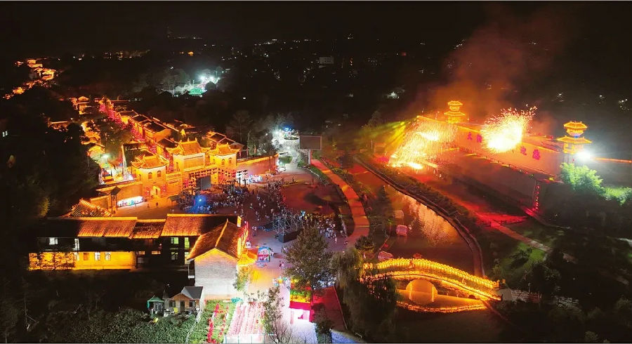 夜幕降临,火花四溅,光影交错,在裸眼3D技术打造的场景艺术下,一场《如愿大阳》实景戏剧悄然登场,婉转的音乐和动人的故事仿若解读着千年大阳铁文化,让游人怀揣着对历史文化的探寻,沉浸式走进这千年古镇,一睹往日恢宏……