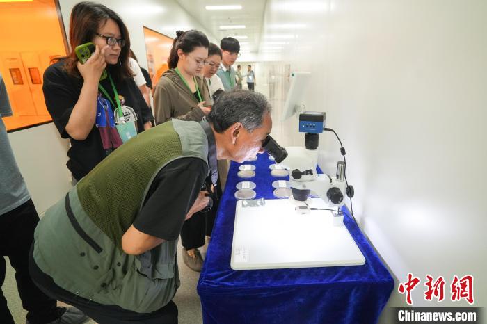 “能源强国·‘碳’路先行”网上主题宣传活动采访团在北纬三十八度集成电路制造有限公司参观、采访。 武俊杰 摄