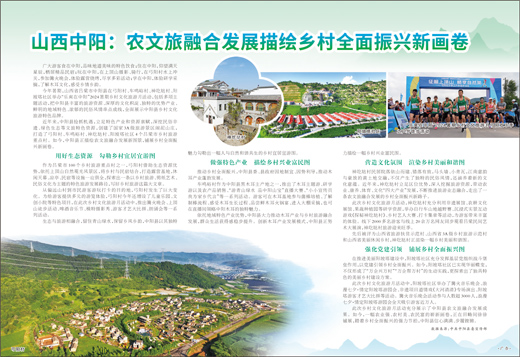 近年来,中阳县抢抓机遇,立足特色产业和资源禀赋,深挖民俗非遗、绿色生态等文旅特色资源,创建了国家3A级旅游景区闹泥山庄,打造了弓阳村、车鸣峪村、神圪垯村、阳坡塔社区4个吕梁市乡村旅游重点村。如今,中阳县正描绘农文旅融合发展新图景,铺展乡村全面振兴新画卷。