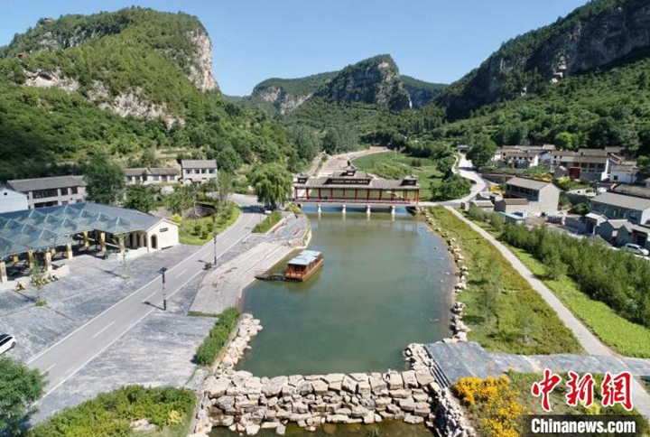 “金翠丈河 夏养胜地”丈河村游客如织。 程旭东 摄
